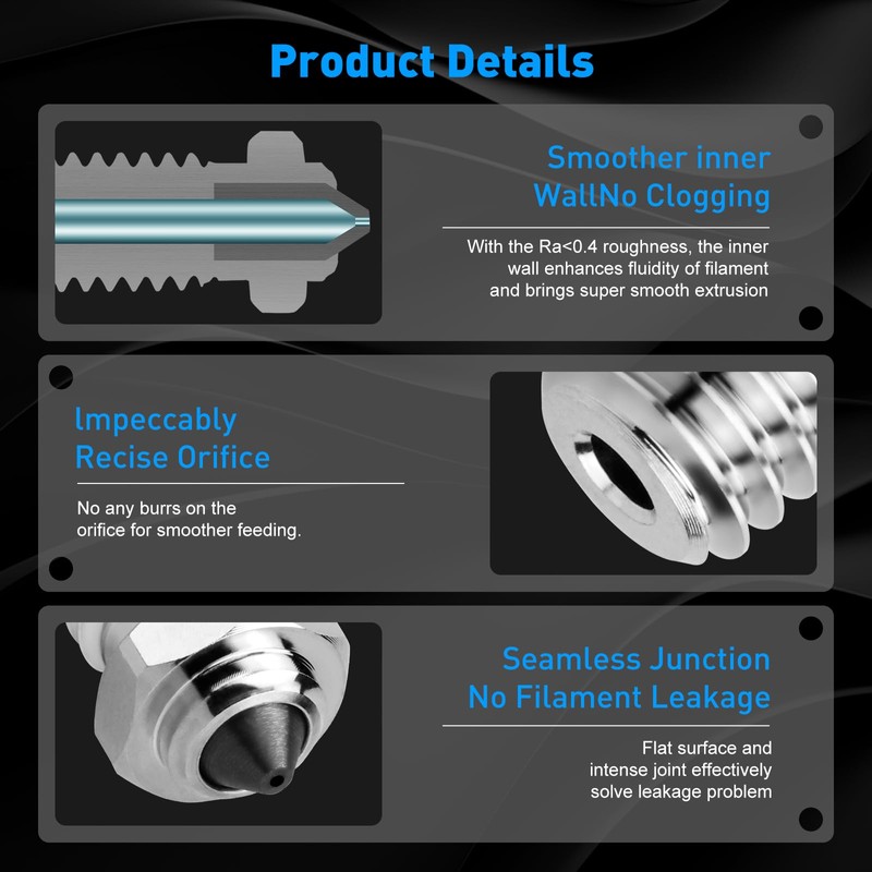 • One For Any Filaments: Its excellent abrasion resistant property makes it is not only suitable for highly abrasive filaments eg. CF, GF, Metal filled etc, but also works well with regular filaments eg PLA, ABS, TPU, PETG etc