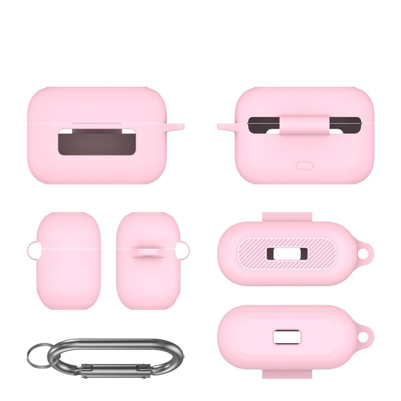 [Upgrade] VAEKNVG Silicone Case Compatible for TOZO NC3, Shockproof Protective Earbuds Case with Carabiner Accessories (Pink)