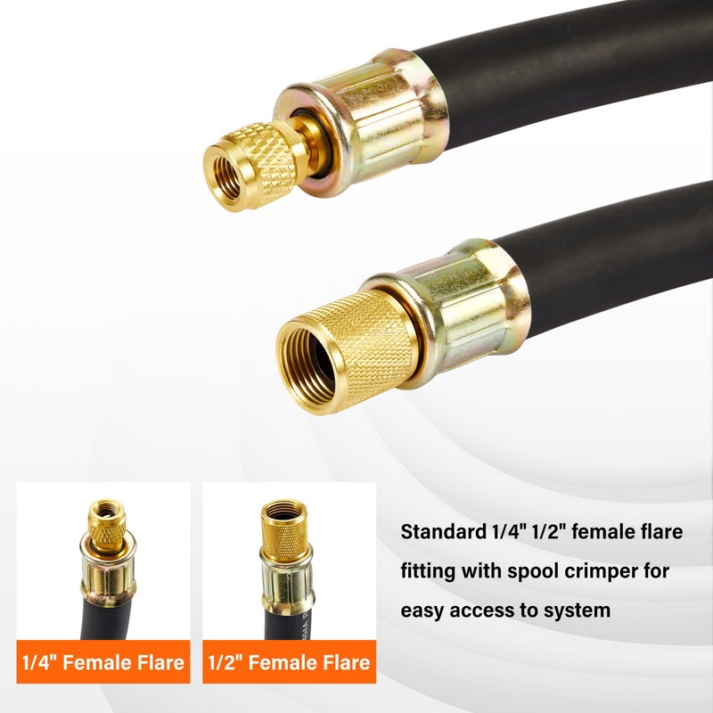 - Wide Usage: Please check the size you need before purchasing. This 1/2" internal diameter hvac hose is compatible with R410a, R134a, R407C, R502, R12, R22, and more, suitable for multiple applications from air conditioners and refrigerators to car AC and cold systems