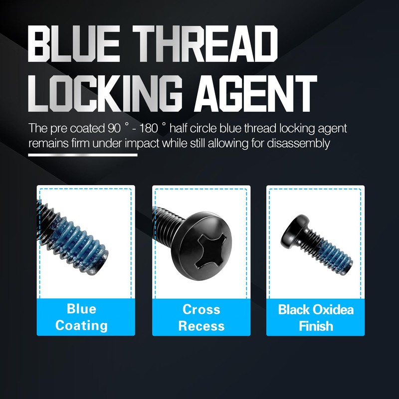 - Upgraded Version:This screw is crafted from 304 stainless steel and electroplated surface provides reliable corrosion resistance and a clean appearance, pre coated 90°- 180°half circle blue thread locking agent remains firm under impact while still allowing for disassembly,making it ideal for long-term use in various environments.