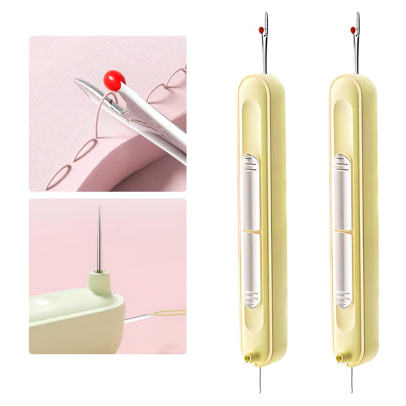 - Two-in-one, excellent performance: Innovative double-head integration, threading and unstitching are controlled by one hand. Needle threading is smooth, threading is neat, and it is effortless to overcome the thread feet at buttons and labels, without eye fatigue and hand fatigue, helping sewing enthusiasts to complete the work efficiently