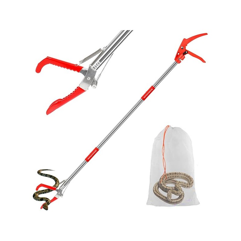 Upgraded 50" Snake Grabber Tool with Lock, Stainless Steel Snake Tongs, Foldable Long Reach Snake Catcher with Non-Slip Grip and Wide Jaw