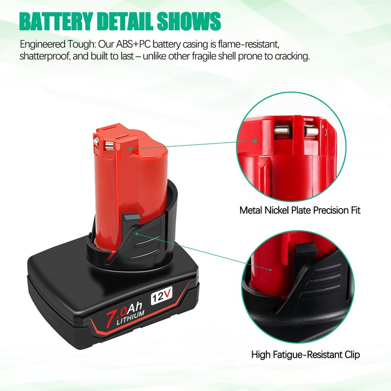 Upgraded 7000mAh 12V Battery Compatible for Milwaukee m12 Battery for Milwaukee 12V Power Tool Battery 48-11-2401 48-11-2412 48-11-2411 48-11-2420 48-11-2410