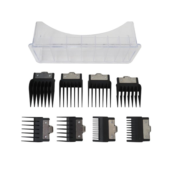 Set of 8 attachment guards (.5, 1, 1.5, 2, 3, 4, 5, 6) that enable you trim different length of hair as you want, meeting all your stylish needs. Cutting lengths: 1/16”(1.5mm), 1/8”(3mm),3/16”(4.8mm),1/4”(6mm),3/8”(10mm),1/2(13mm),5/8”(16mm),3/4”(19mm).
