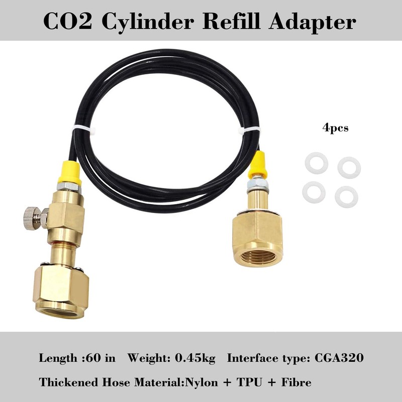 - 60-inch CO2 Tank Refill Adaptor Transfer Hose, for filling 50lb/20lb CGA320 threaded co2 tanks to 10lb/5lb CGA320 threaded co2 tanks,so More convenient for you to use small CO2 tanks