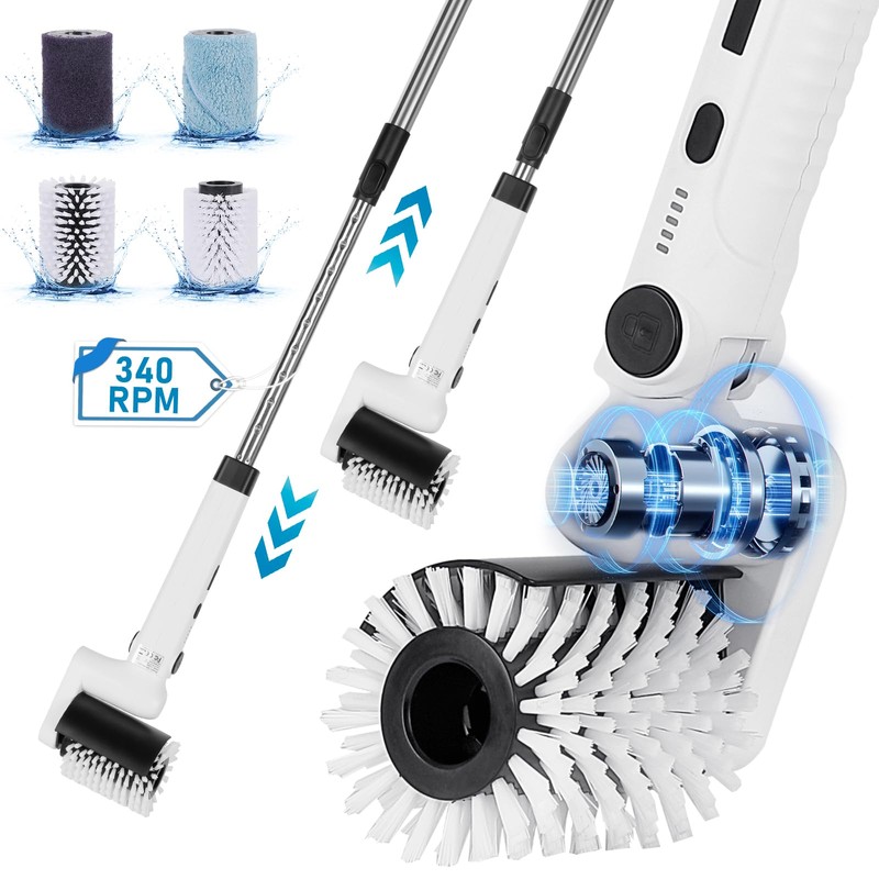- 【Time Efficiency】Outperform manual tools by slashing cleaning time by up to 40%. Perfect for busy lifestyles, our scrubber reduces physical effort while delivering pristine results. Its lightweight construction and intuitive operation make it a breeze to maneuver, ensuring your home sparkles with minimal hassle and maximum convenience