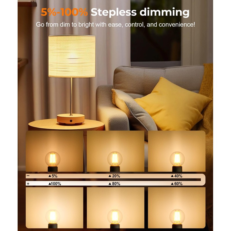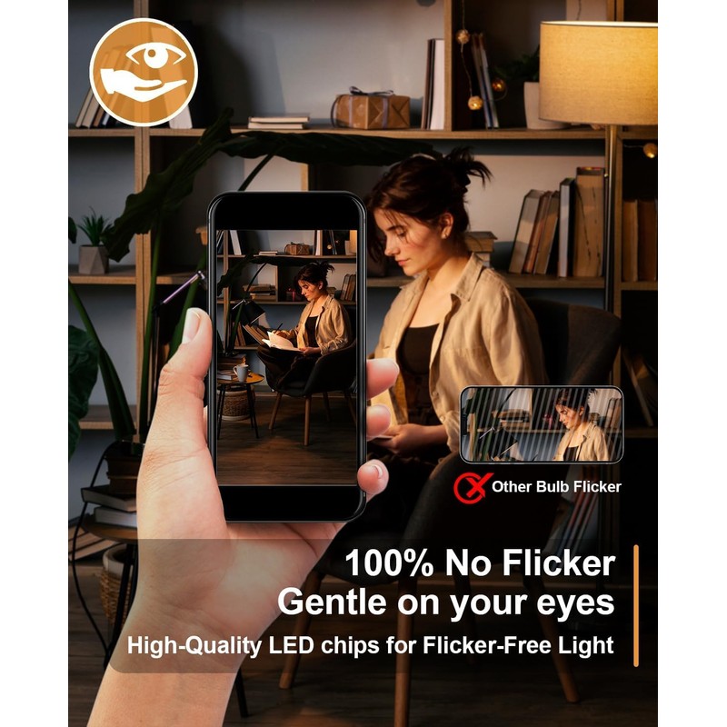 - 【Stepless Dimming from 5% to 100%】Built-in premium-quality dimming chip. Our dimmable LED bulbs deliver smooth, flicker-free dimming from 5% to 100%. Confidently dim the lights and set the perfect mood for your space.