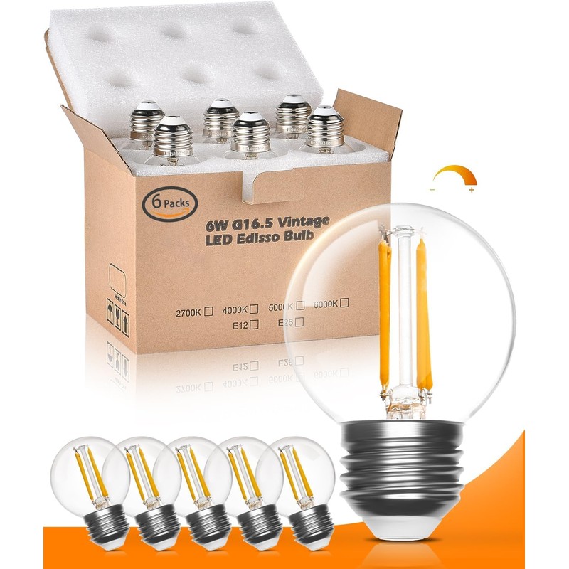 【Upgraded】 Dimmable E26 Led Bulb 60 Watt, G16.5 Light Bulbs Neutral White 4000K, Globe Small E26 Bulb, Edison Bulbs for Chandelier, Celling Fan, Vanity Lights-6W、860LM 90+CRI、6 Pack