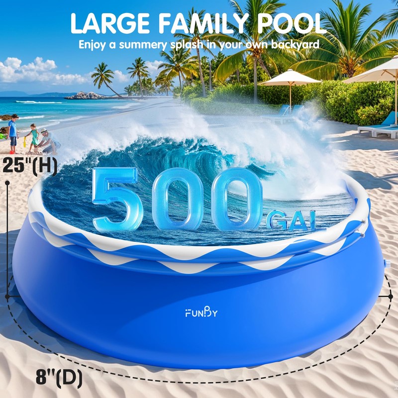 FunBy Upgraded Double Rings Inflatable Above Ground Pool Easy Set,Inflatable Swimming Pool for Adults,Inflatable Top Rings Above Ground Swimming Pool,Water Ripple Print,500 Gal Capacity (8ftx25in)