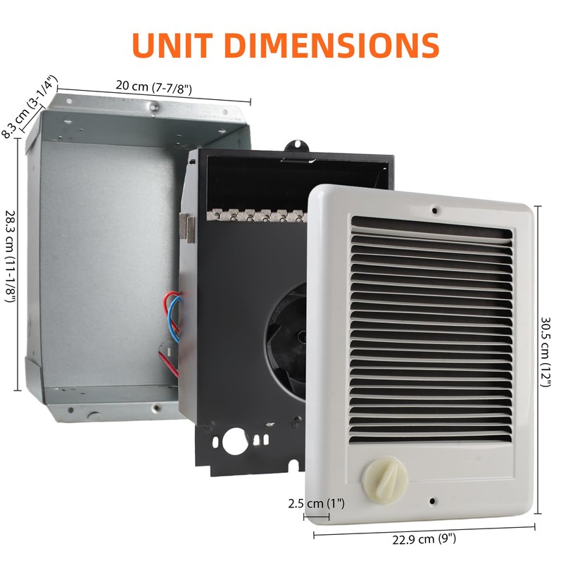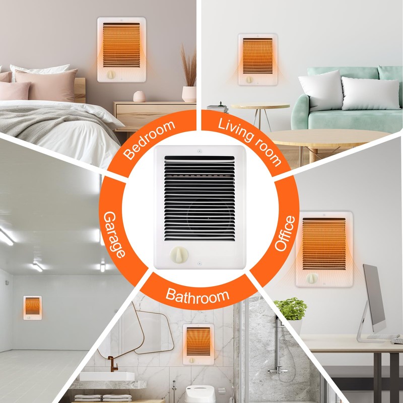 The high-capacity heating element ensures rapid heat distribution, while the adjustable thermostat allows you to maintain your desired temperature effortlessly. Constructed with durable materials, this wall heater is built to withstand years of use. Its compact design saves valuable floor space, making it an ideal choice for apartments, offices, or any room where heating is required. Enjoy cozy warmth and energy-efficient performance with this high-capacity wall heater.