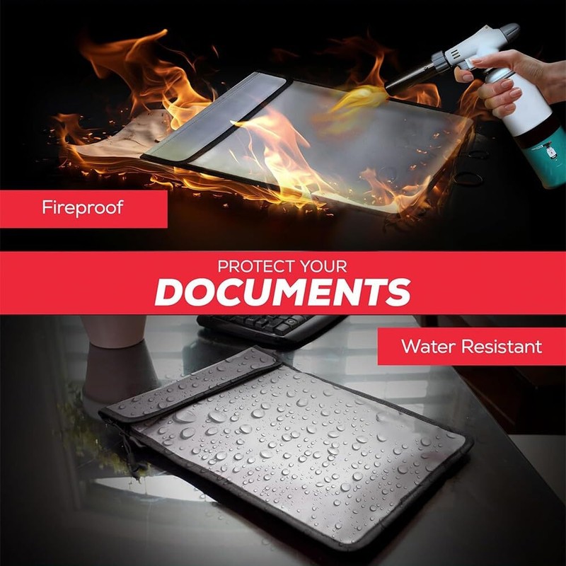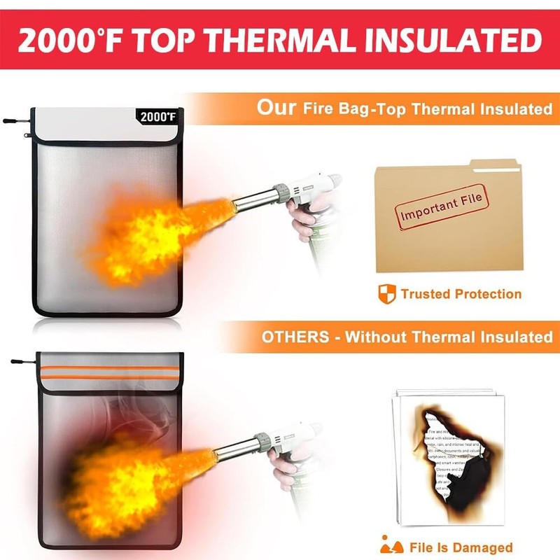 - 【Reliable 6-Layer Fireproof & Water Resistant Protection】 Constructed with fire-resistant and heat-insulating materials, this UL-certified upgraded fireproof bag offers strong protection with a 6-layer structure designed to withstand high temperatures. The sealed waterproof zippers provide a 360° security seal, capable of withstanding firefighter hose sprays for maximum safety. This fireproof and waterproof bag safeguards your valuable documents and cash.