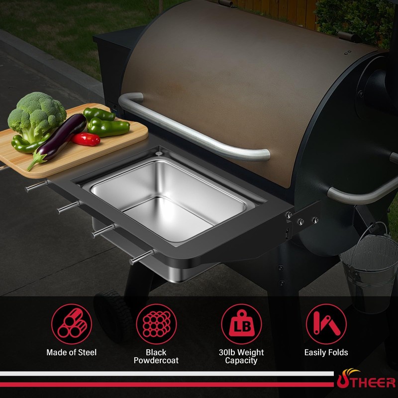 - Built for Heavy Grilling: Constructed from SPCC cold-rolled steel with a rust-resistant powder coating, this shelf supports up to 50 pounds of food, basin, or tools. It’s more than a workspace—it's a durable traeger accessories upgrade built to handle serious BBQ sessions.