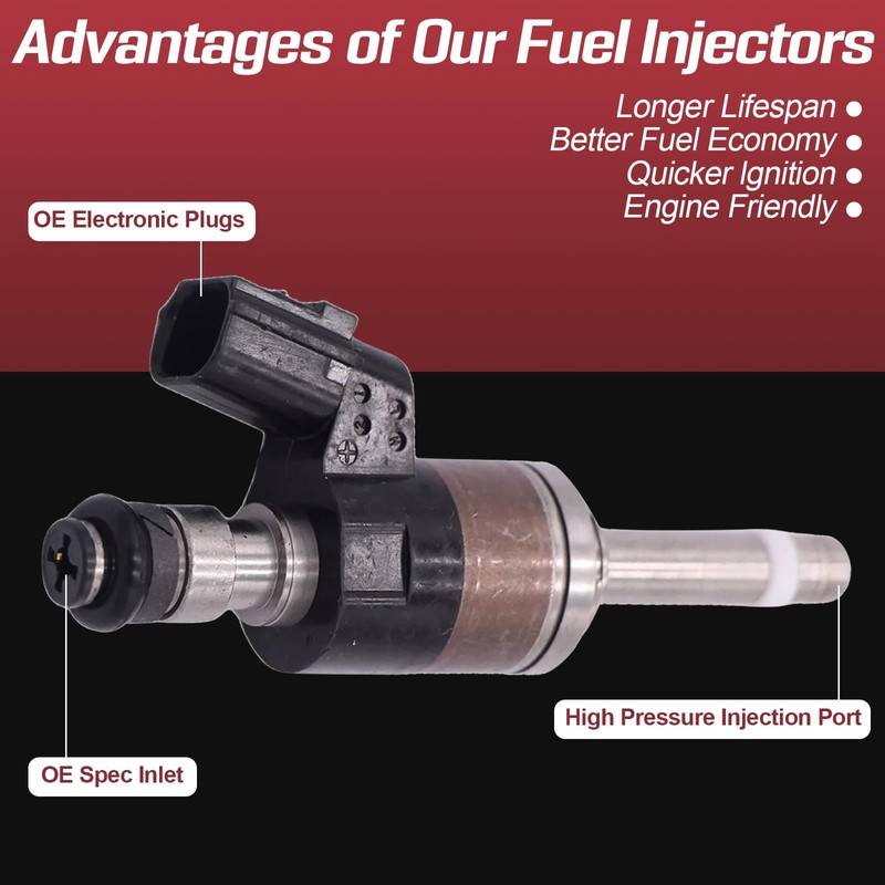 - 【Enhanced Engine Efficiency】 By delivering fuel to the engine with pinpoint accuracy, these fuel injectors optimize fuel efficiency, reduce harmful emissions, and improve overall engine performance, reducing issues like misfires and poor gas mileage.