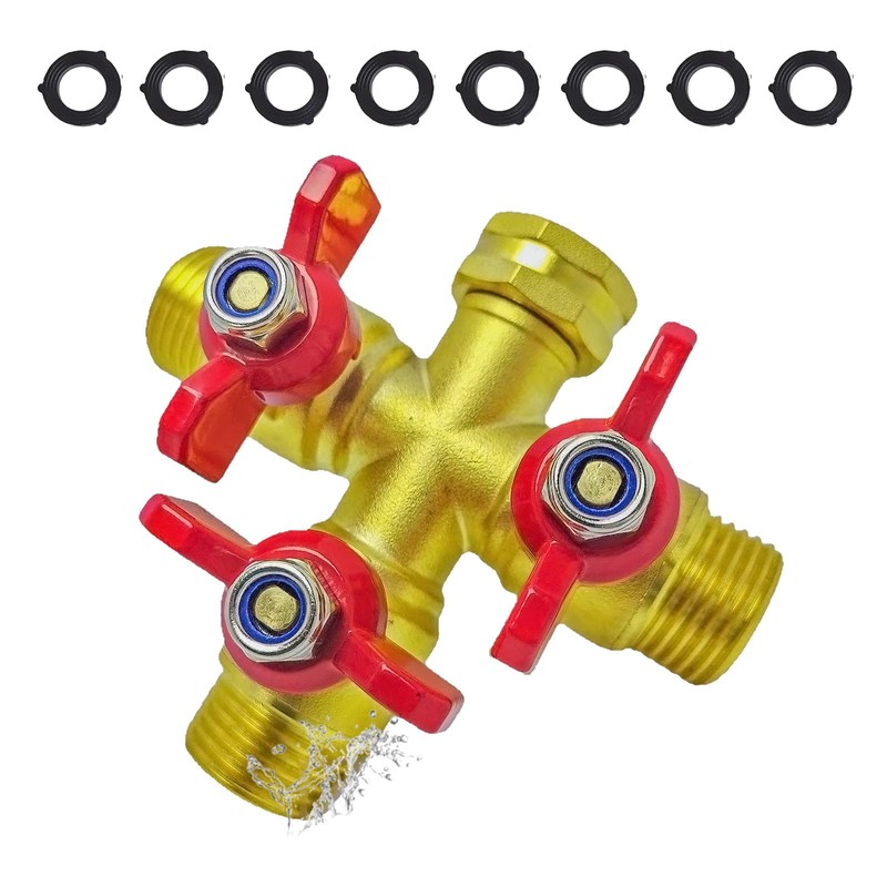 Upgraded Full-Flow Brass Garden Hose Splitter, 3/4 Inch,3-Way 十 Connector for Outdoor Faucet, Heavy-duty Handle & Individual Shut-Off Valves, Ideal for Garden Irrigation & Cleaning Tasks
