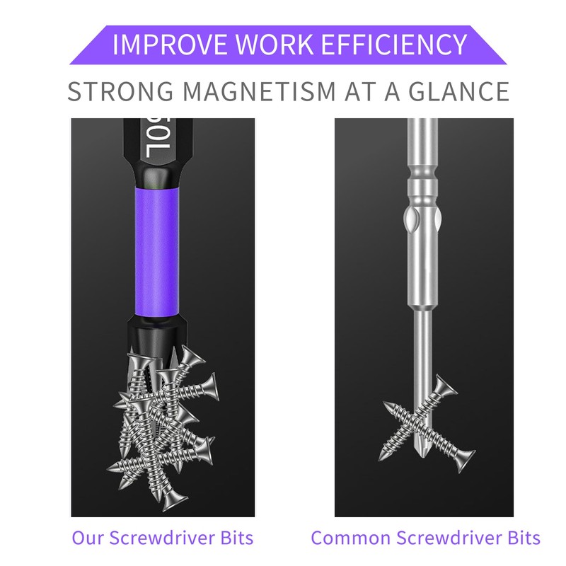 • 【Deep Bite】Magnetic drill bits deep bite design allows them to engage deeper with the screw head. By providing a stronger connection between the drill bit and screw to reduce the chance of head slippage and increase overall work efficiency.