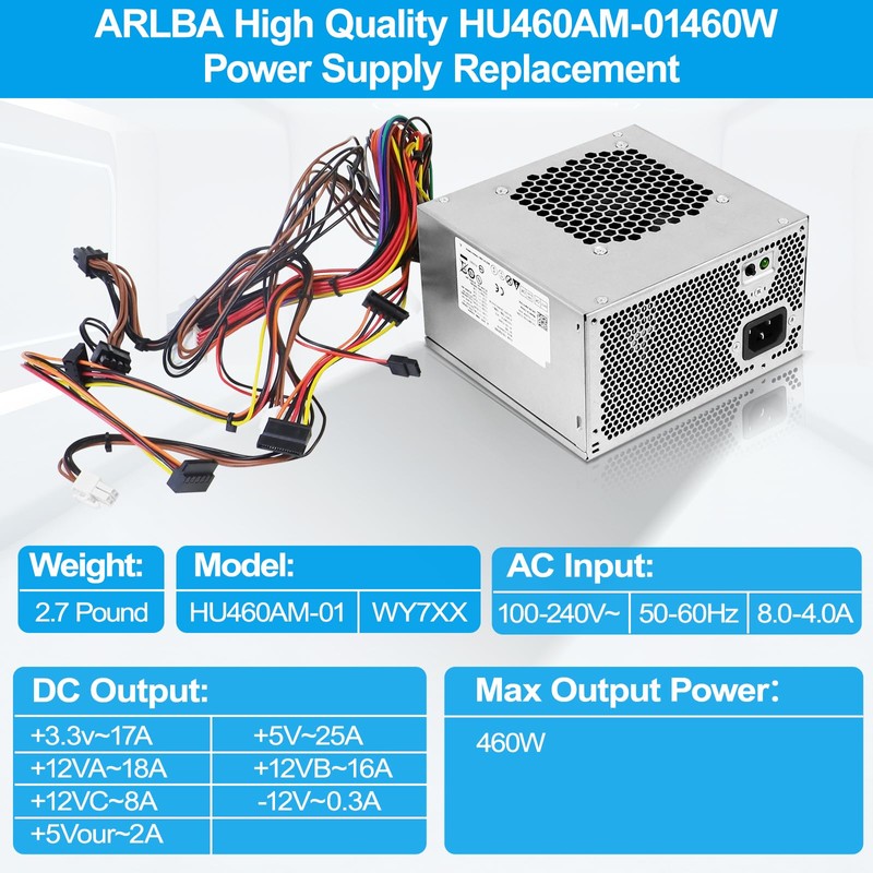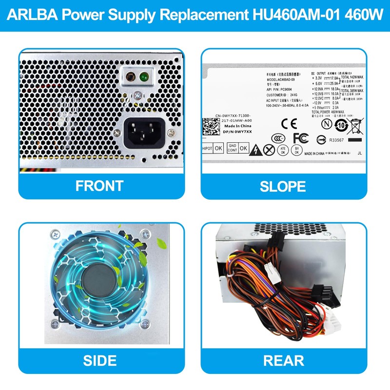 - ✅ 【D460AM-03 PPower Supply Replacement Part】: ARLBA HU460AM-01 460W power supply uses a 9cm temperature-controlled silent fan, which is made of high-power power supply and can be rated at 460W output. Each unit undergoes rigorous quality inspection, adhering to OEM manufacturing standards, to provide a reliable and durable power supply for your system.