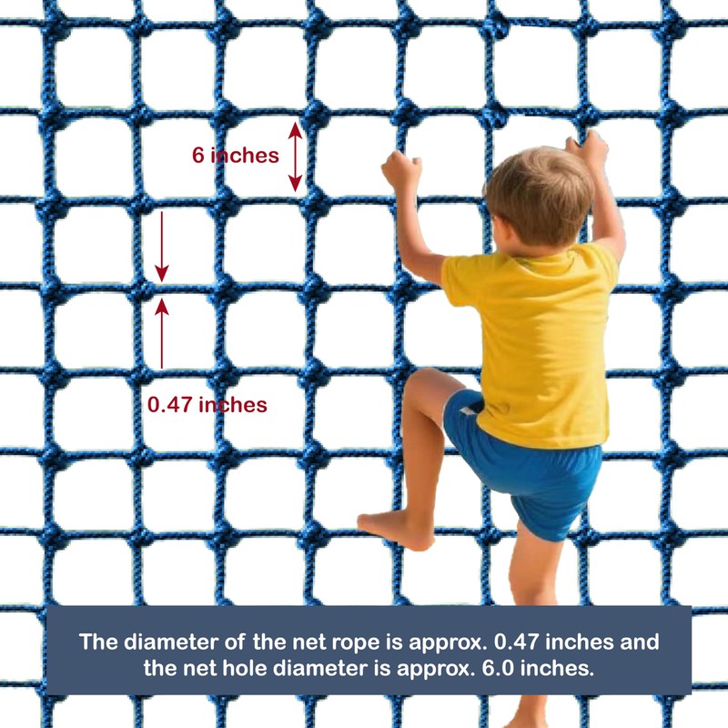 - 【Sturdy and Safe for Unlimited Fun】Our climbing net is specially designed for children and is suitable for both indoor and outdoor use, with a remarkable load-bearing capacity of 700 pounds. The ropes of the net, which are 0.47 inches in diameter, are tough and flexible, working in perfect harmony with the carefully designed 6-inch mesh holes. This ensures that children can move their hands and feet freely while climbing and eliminates the risk of getting stuck. The tightly woven craftsmanship has undergone rigorous testing and can steadily support children's lively movements, allowing parents to feel relieved and children to fully enjoy the fun of climbing.