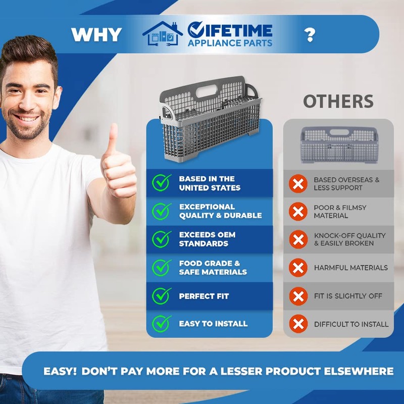 - ✅ Ultra Durable, Quality Replacement Silverware Basket for Whirlpool, Kenmore Dishwasher