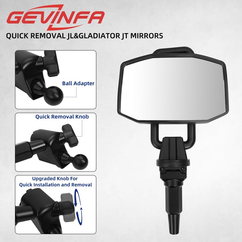 GEVINFA Upgraded Mirrors Doors Off Compatible with Jeep Wrangler JL JLU and Gladiator JT 2018-2023, Quick Release JL Mirror, No Wobble & Quick Removal knob(Not Fit 2024 2025) Patented