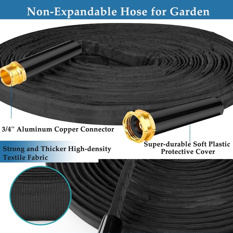 - 【Solid Brass Connectors】This non-expandable garden hose rugged 3/4-inch (US standard size) brass connector will not break, crack, leak or corrode. It features a special woven design that provides high flexibility, allowing it to easily maneuver around narrow corners, trees, and other obstacles, making watering tasks effortless.