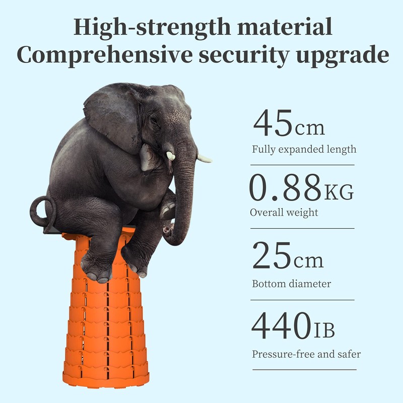 - 【Safety and Hight Stable】 Made of high-strength heavy duty environmental friendly material plastic PA+ABS, the cylinder shape structure, tight connecting clasps, and the non-slip base ensure that this collapsable stool will give the stability to provide safe and comfortable sitting. The maximum load capacity is as much as 440 lbs!