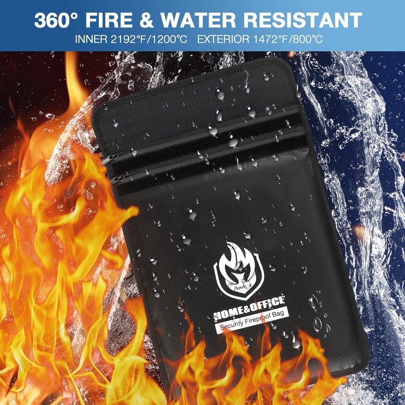 - ★ 【100% FIREPROOF & WATER RESISTANT】- Andyer Upgraded fireproof & water resistant bags are made of 3 layers high quality fire retardant non-itchy silicone coated fiberglass which stands up the temperature up to 2000℉. Upgraded Fireproof zipper and Hook & Loop Closure add storage security and carrying safety. Meantime, the Sealed zippers are totally waterproof which can survive the spray of firefighter's hose on full blast, provides 100% security seal and maximum protection for your documents.