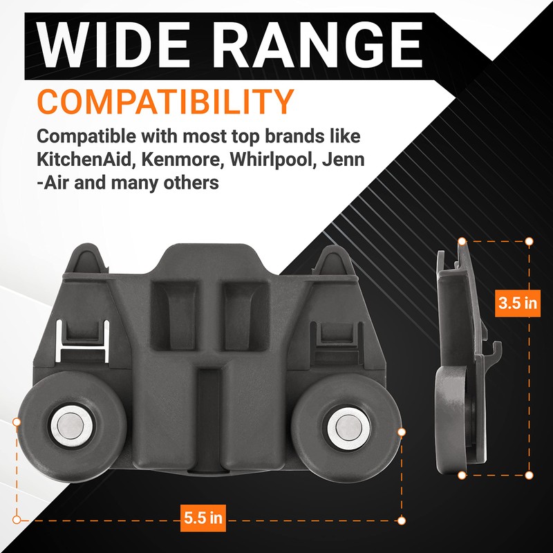 • ✅ PERFECT MATCH: W10195416 Upgraded Lower Dishwasher Wheels replaces part numbers: #WPW10195417, WPW10195417VP, AP4538395, PS11750057, EA2579553, AH2579553, PS2579553. It is made exactly fit for several models of top-name brands (Kenmore, KitchenAid, Whirlpool, Jenn-Air).