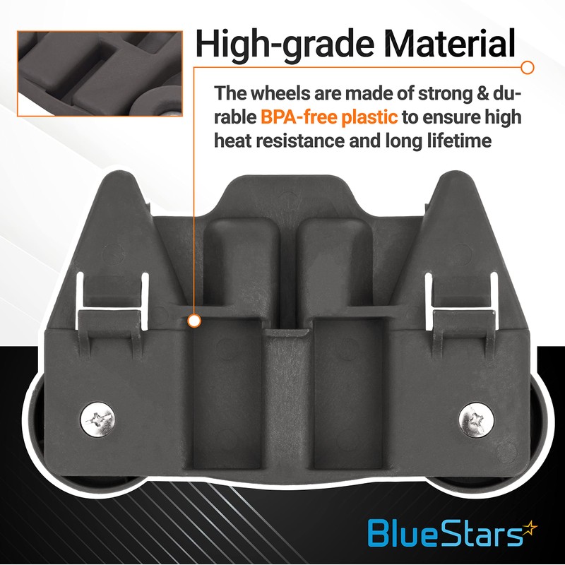 • 💡 𝐈𝐌𝐏𝐑𝐎𝐕𝐄𝐃 𝐃𝐄𝐒𝐈𝐆𝐍: We replaced the original plastic screws version with an upgraded new high-quality 𝐒𝐓𝐄𝐄𝐋 𝐒𝐜𝐫𝐞𝐰𝐬 version. This enhances wear resistance and limits the rusting process - Supports heavy duty for frequent use and heavy loads - Far stronger than the plastic version to increase the life cycle by 50%. The wheel body is made of heat-resistance ABS plastic without BPA material, ensuring safety under extremely high temperatures of dishwasher operation.