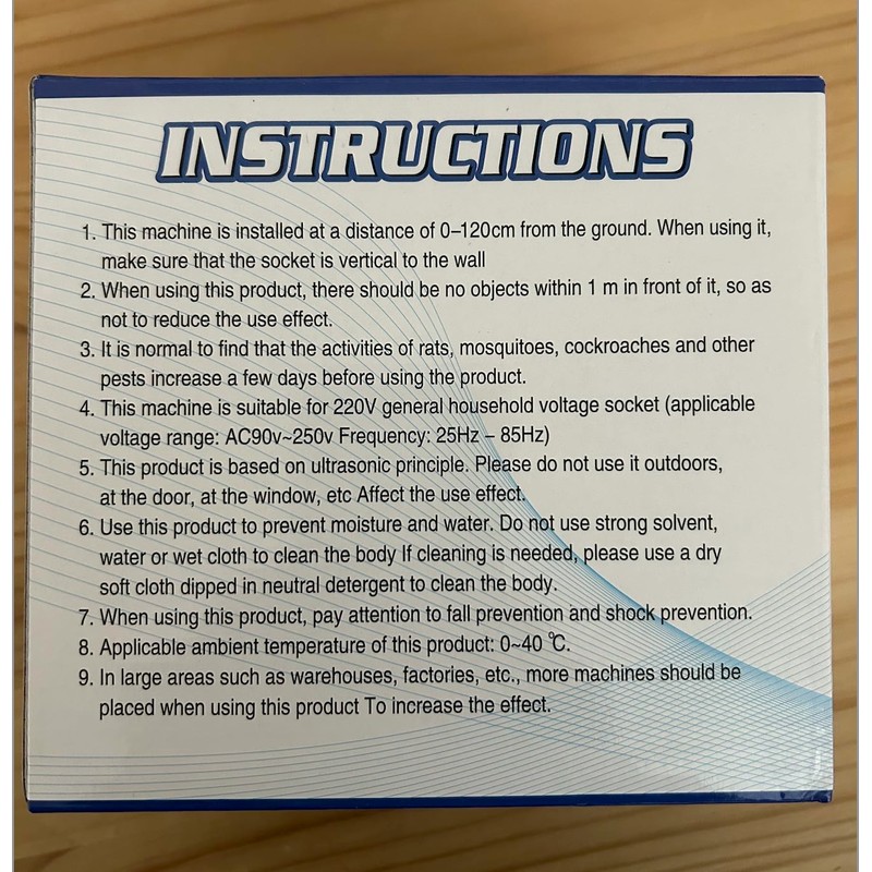 • Work progress process:The typical results can take 1-2 weeks depending on the severity of the pest infestation. Mostly can see the electronic pest repellent results within 3-4 weeks! Then we can say goodbye to pests and mice! Note: To keep the pest from coming back continued use is recommended