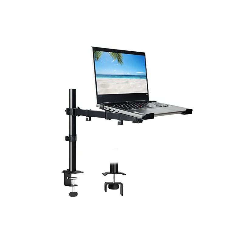 - FULL MOTION ARM - Adjustable laptop arm mount offers 90° tilt, 180° swivel, 360° rotation, the height adjustment along the center pole. Arms have three joints that allows you to adjust the position of the notebook anywhere.