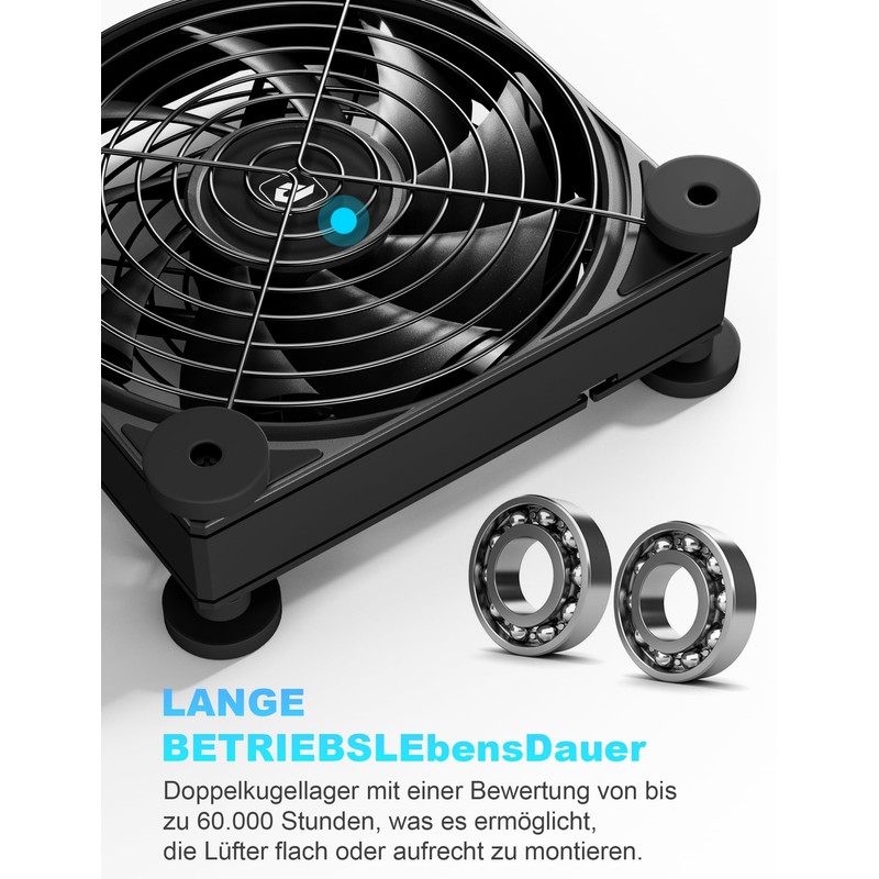 - Dual ball bearings: PC fan has dual ball bearings, fan can work for a long time with double ball bearings, the service life of the 12 V 120 mm fan is ≥60,000 hours.