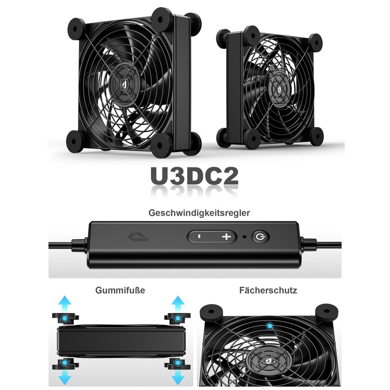 - 【Wide practicality】Fan size: 120 x 120 x 25 mm (×2); cable length: 2 m. It is not only suitable for cooling devices such as PCs, routers and hard drives, but also AV equipment and game consoles.