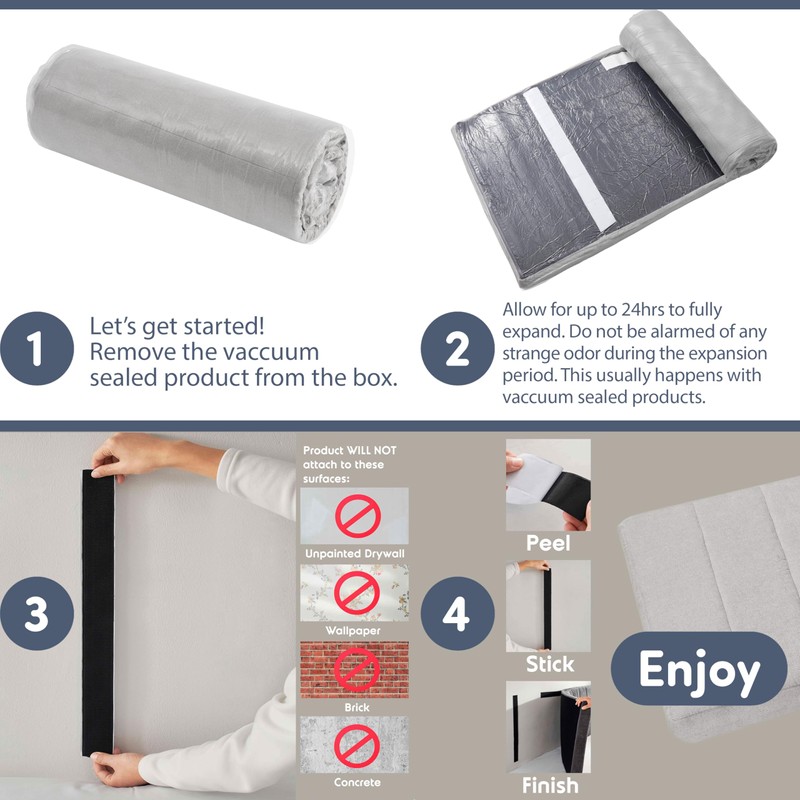 Upholstered King Headboard - Easy Assemble Channel Stitched Headboard King Size Bed - Wall Mounted Headboard with 3D Soundproof Wall Panels Peel & Stick Floating Headboards for King Size Bed - Silver