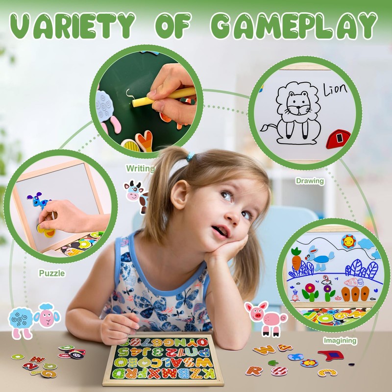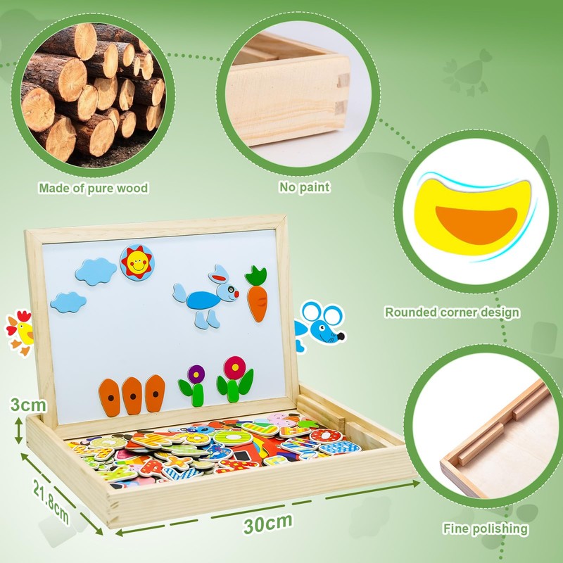 Uping magnetisches Holzpuzzle Staffelei doppelseitige Tafel Holzbrett Doodle 155 Stücke für Kinder ab 3 Jahre Bauernhof