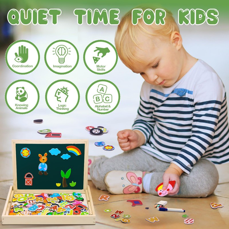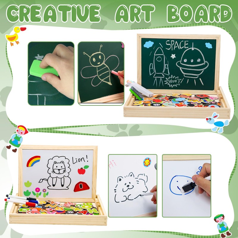 • Double-sided wooden magnetic board: black and white board come with magnets and can write
