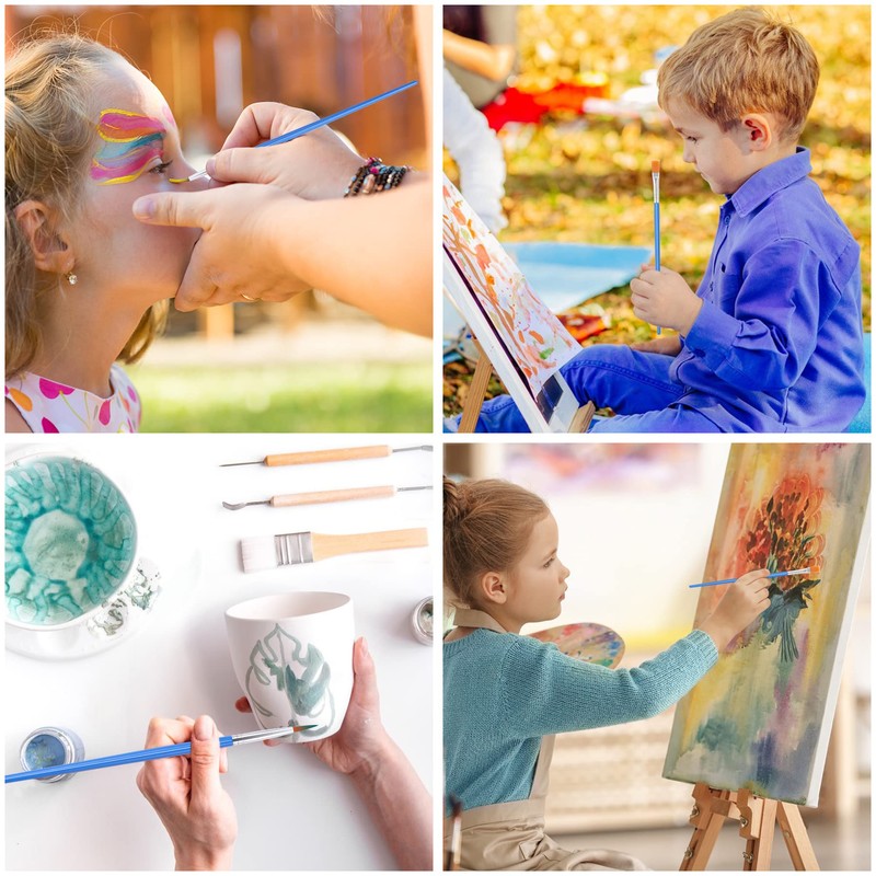 • Multifunctional – The round flat paint brushes can meet all your needs. Multipurpose brushes are suitable for watercolor painting, oil painting, gouache painting, acrylic painting, body, nail, face painting, miniature, model, ceramics, arts and crafts painting, etc.