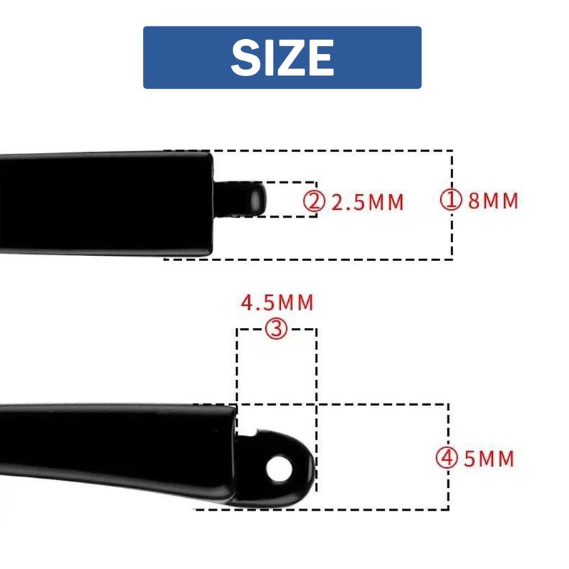 - 【SIZE】The dimensions of the temples are 140mm long, and the hinge is 2.5mm thick. Please carefully check the type and size of the eyeglasses hinge before you place an order.