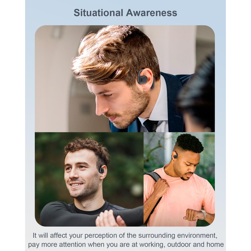 - MANTENGA EL CONOCIMIENTO DE LA SITUACIÓN Y LA SEGURIDAD: Los auriculares deportivos de oreja abierta le permiten mantenerse conectado con su entorno mientras está inmerso en la música. En movimiento, los auriculares abiertos le ayudan a mantenerse a salvo y a ser más consciente de los peatones y el tráfico. En la oficina, los auriculares abiertos le permiten interactuar con sus compañeros mientras escucha su canción favorita. En casa, los auriculares abiertos le permiten estar conectado con su familia y amigos sin perderse ningún mensaje importante