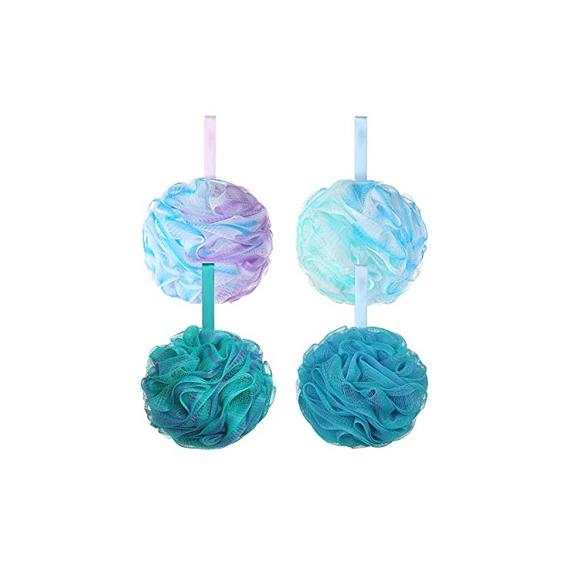 - Colourful Colors- Comes with four colorful loofah sponge, so you can match them to your bath decor. Each family member can have their own choice of color.Choose your favorite loofah sponge.