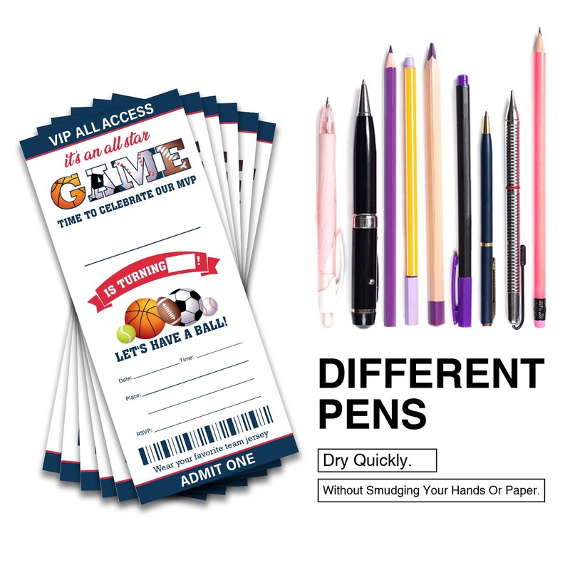 - Ticket Style: These invitation cards are fun ticket styles. Can make the guests feel your taste and dedication. Add fun to your party. High quality double-sided printing. It is convenient for you to fill in the information.
