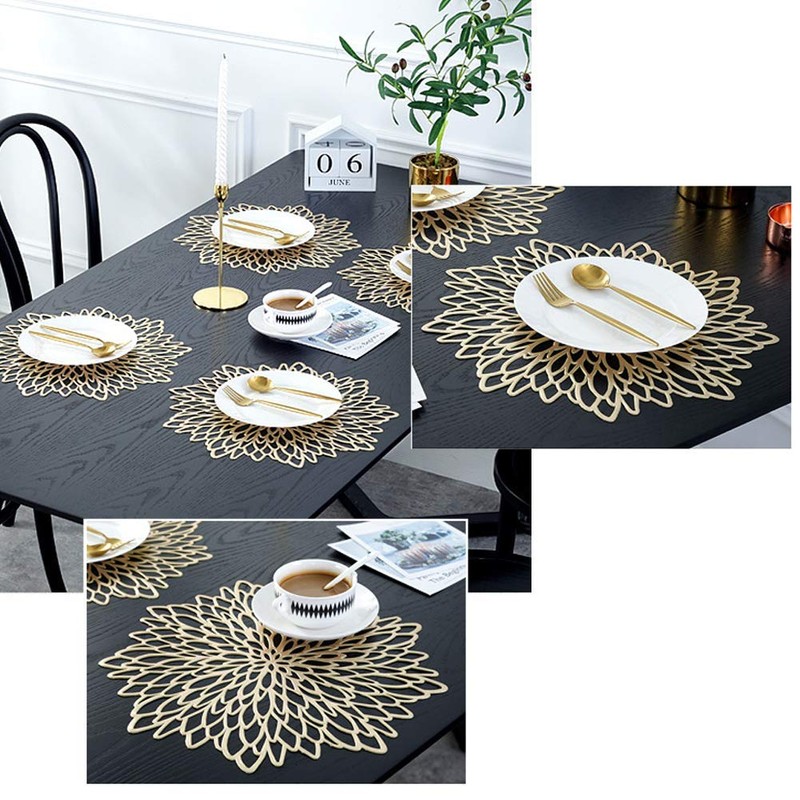 - Widely Used PVC placemats: hollow round PVC placemats are elegant, beautiful and shiny, looks very textured, and is widely used for occasions such as restaurants, cafes and home kitchens. They are also great for weddings, parties and banquets