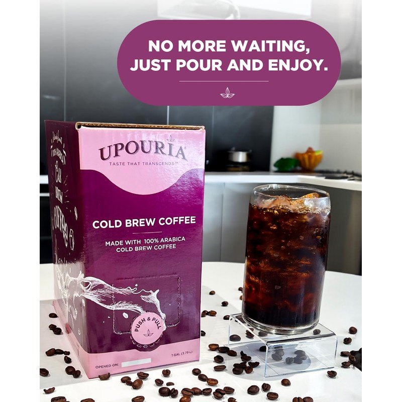 Discover the perfect balance of bold flavor and smooth refreshment with Upouria Cold Brew Coffee on tap. This ready-to-drink cold brew is made from 100% Arabica beans, providing a rich, satisfying taste without any preservatives. Ideal for home or commercial use, our cold brew coffee comes in a convenient 1-gallon bag-in-box design, making it easy to pour and store in your fridge. Enjoy a consistently smooth and flavorful iced coffee experience, whether you’re brewing for one or serving a crowd.