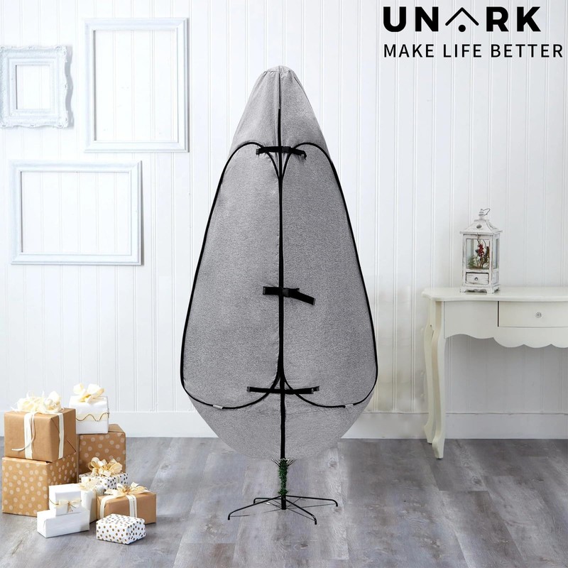 - Upright Christmas Tree Storage Bag: UNARK christmas tree storage bag has a unique upright Christmas tree tent design, it is an upright pop-up tent, please open in an open area, note that the tent will pop up quickly. No longer will you struggle to fit your tree into tight, flimsy boxes. Instead, simply slide our spacious artificial christmas tree storage bag over your decorated tree, preserving your precious ornaments and ensuring you're ready for next year's festivities with minimal effort.