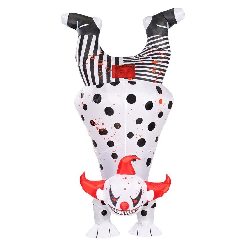 - If you just love clowning around our Adult Inflatable Upside-Down Clown costume is the one for you! Not only will you look like you are walking on your hands, this costume is a Halloween dream with its scary clown decoration and hilarious inflatable body.