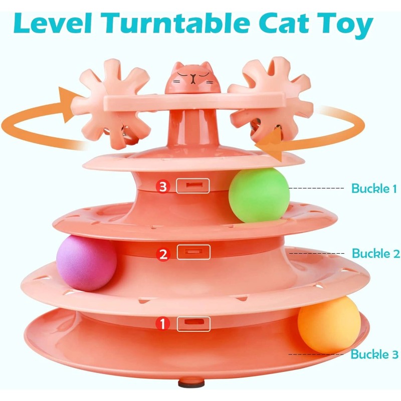 - Detachable 4 Level: Multi-level durably turntable interactive cat toy with cute cat head shape on the top level. Fun to entertain your cat for hours.