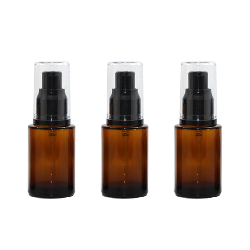 UPSTORE 3Pcs 30ml/1oz Empty Amber Glass Lotion Pump Bottles Soap Dispensers with Cap Refillable Travel Makeup Cosmetic Storage Container for Cream Essential Oil