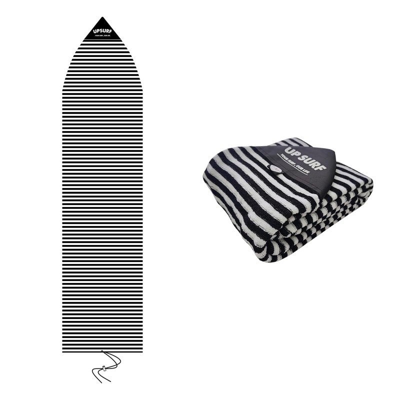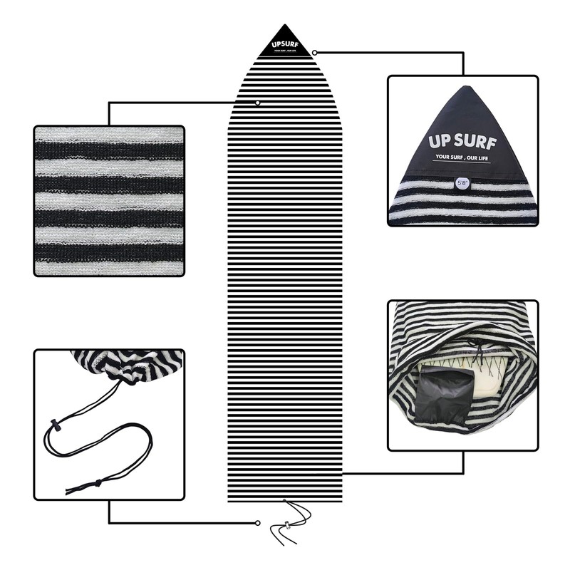 UPSURF 5'8"/5'10"/6'/6'6"Surfboard Sock Cover-Long board Sock Cover Light Protective Bag for Your Surf Board (Black+White, 5'8")
