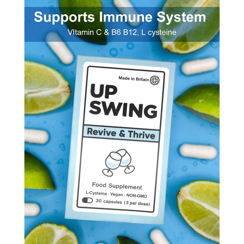 - Eco Integrity: Upswing party aftermath capsules benefit you and the planet. These vegan B6 vitamin capsules use Non-GMO UK ingredients, supporting your immune system while being eco-friendly. Made in Britain with 100% recyclable packaging, our Vitamin kit is the smart choice for those valuing health and environmental care.