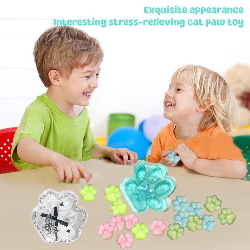 - 🐾 PERFECT SIZE FOR ANY OCCASION: The set includes two large squishy cat paws (12cm x 12cm) and a box of 20 mini cat paws (1.3cm x 1.3cm), ideal for home, office or as a small toy for travelling.