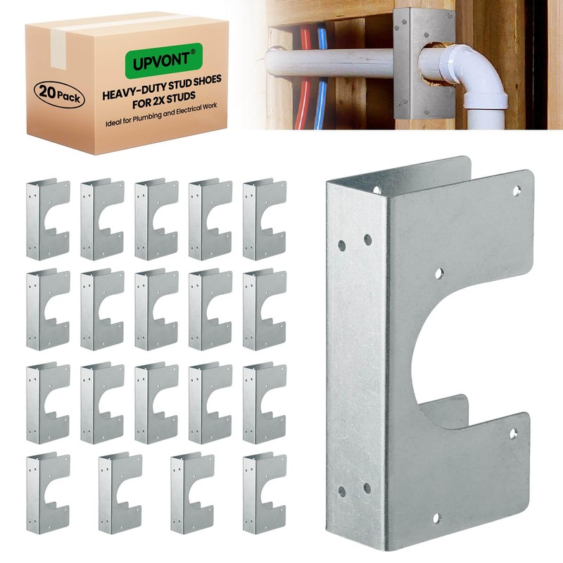 UPVONT Stud Shoes for 2X Studs, 16-Gauge Galvanized, 6.25" Height, 1.5" Width, Fits Up to 2 3/8" OD Pipes - Thicker, Higher, IBC/IRC Code Compliant, Extra Durable (1.5" x 6.25" - 20 PCS)